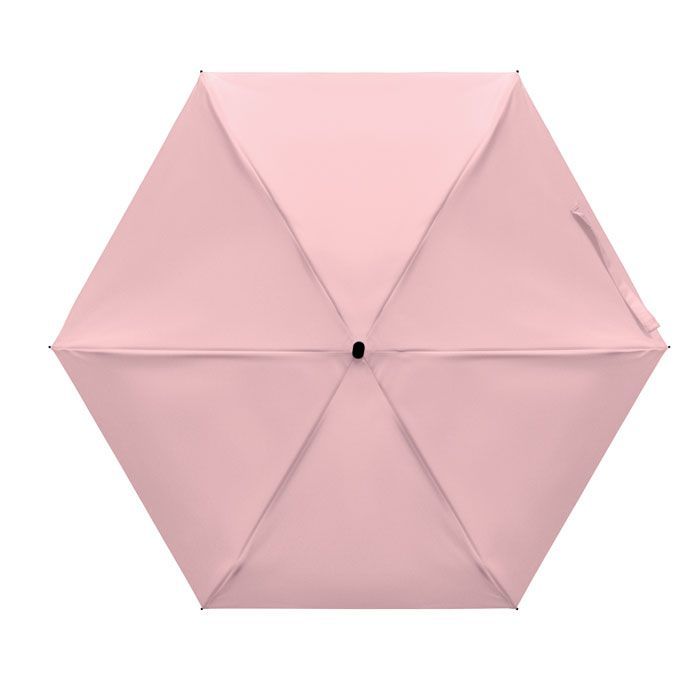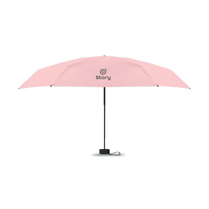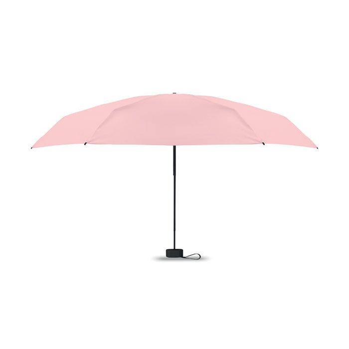 19palcový manuální skládací deštník z 190T pongee v obalu. Kovový a sklolaminátový větruodolný rám, černá pogumovaná rukojeť s popruhem na zápěstí. Kompaktní velikost, ve složeném stavu 17 cm.
