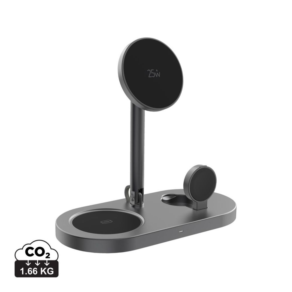 "Elegantná stolová nabíjačka Quantum umožňuje ultra-rýchle 25 W magnetické bezdrôtové nabíjanie telefónu, Apple Watch/Samsung Watch a slúchadiel súčasne. Efektívny nabíjací systém poskytuje stabilný výkon pre všetky zariadenia, doplnený o pokročilú tepelnú a bezpečnostnú ochranu pre každodenné spoľahlivé používanie.Vyrobená z RCS certifikovaného recyklovaného ABS plastu, recyklovaného hliníka a recyklovaného PC plastu, s celkovým obsahom recyklovaných materiálov 47 %. USB-C vstup zabezpečuje optimálny 25 W výkon. Produkt je bez PVC a balený v FSC® mix kraftovom obale. Súčasťou balenia je 120 cm USB-C na USB-C kábel z recyklovaného TPE.Minimálny vstup: 9 V / 3 A."
