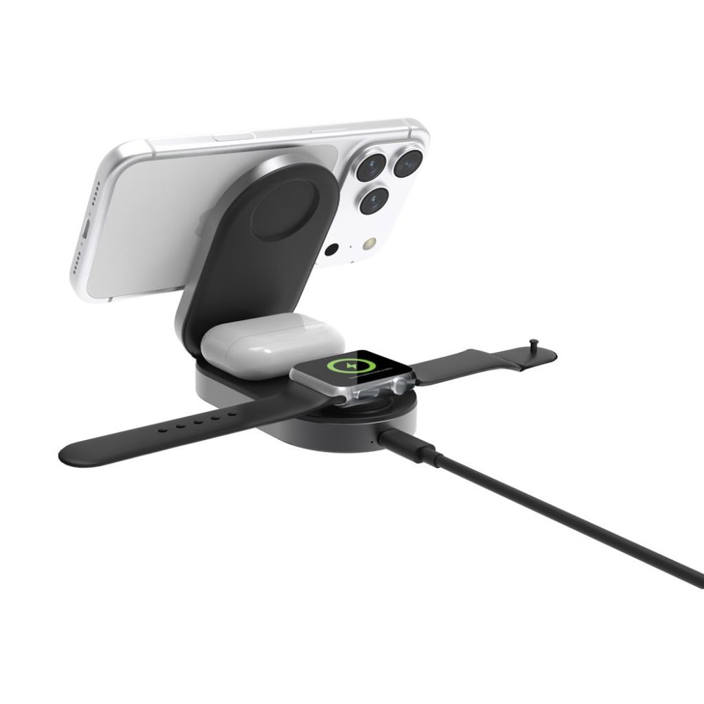 Quantum ultra-rýchla 3-v-1 skladacia bezdrôt. nabíjačka 25W sivá, čierna