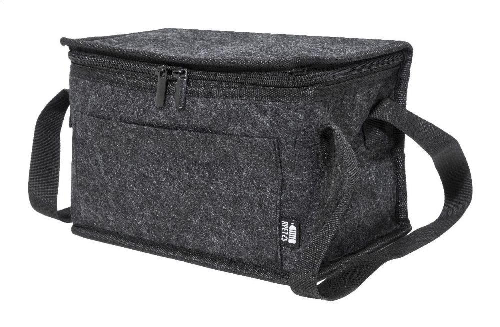 Chladiaca taška na zips z RPET plsti s hliníkovým polstrovaním, predným vreckom a bočnými rukoväťami. S výrazným štítkom RPET.