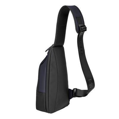 Designed with form as much as function in mind, this casual-inspired crossbody bag is rendered in a deep navy tone, elevated by all-black trims for a sharp, minimal contrast. A subtle utilitarian aesthetic is expressed through its clean structure and perfectly integrated black magnetic closure, engraved with the RR signature. The single strap is adaptable in size, allowing effortless wear as a crossbody. Its compact yet organized volume is designed for daily essentials, featuring two distinct compartments for intuitive separation. Inside, the interior is fully monogrammed, reinforcing the refined identity of the line. Light and roamy in spirit, it is the perfect accessory for someone with a minimalist yet casual and modern aesthetic.