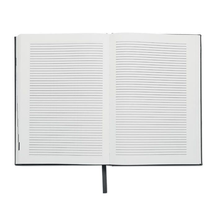 Věčný diář A5 s deskami ze 60 % z recyklovaného polyesteru a 40 % z PU. 416 univerzálních stran z recyklovaného 70g papíru (208 listů). S ladící barevnou polyesterovou záložkou.