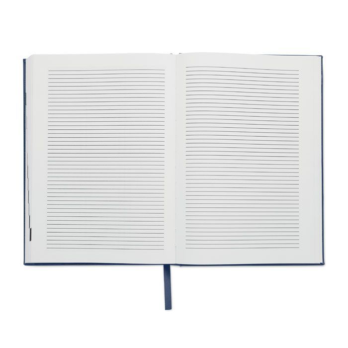 Věčný diář A5 s deskami ze 60 % z recyklovaného polyesteru a 40 % z PU. 416 univerzálních stran z recyklovaného 70g papíru (208 listů). S ladící barevnou polyesterovou záložkou.