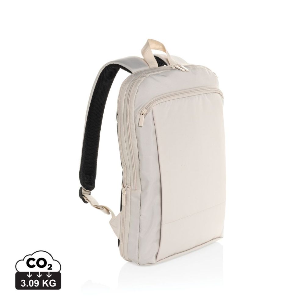 Tenký batoh, ktorý kombinuje eleganciu, všestrannosť a udržateľnosť. Je ideálny pre moderných profesionálov. Batoh je veľmi tenký, ale je možné ho rozšíriť podľa potreby. Vaše veci v ňom zostanú bezpečne usporiadané. Je vyrobený z recyklovaného polyesteru s technológiou AWARE™. Z každého predaného kusu ide 2% na Water.org. Neobsahuje PVC.