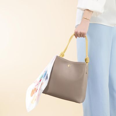 The “Apolline” scarf in off-white showcases soft, colorful hues and organic shapes inspired by nature’s flowing forms. Its watercolor design adds a refreshing and vibrant touch to any outfit. Made from vegan silk (Polyester twill), this scarf measures 90 x 90 cm, offering versatility to be styled in multiple ways.