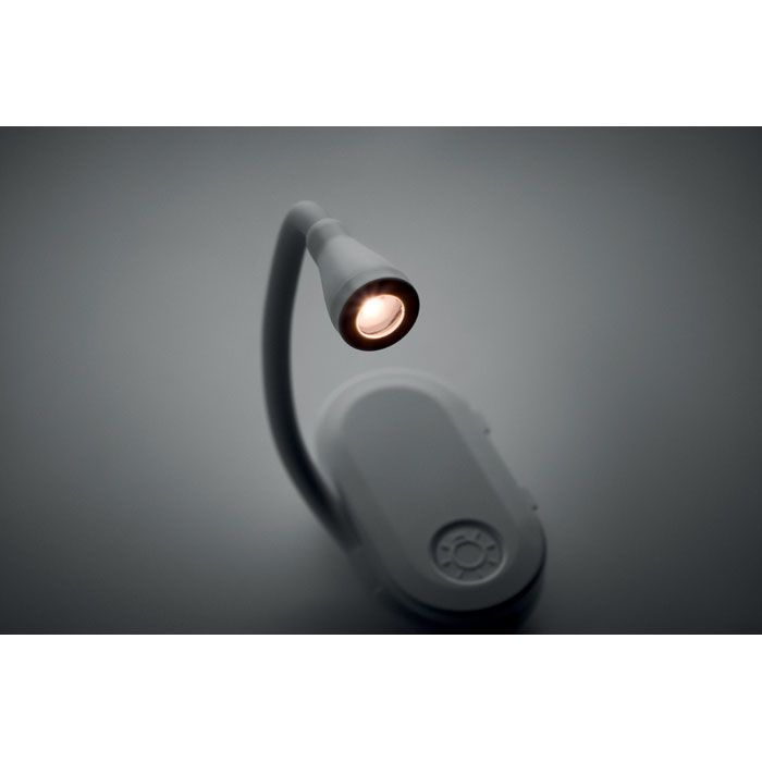 Dobíjecí LED světlo na čtení s krytem z ABS, s ohebným tělem a klipem. Má 3 nastavení světla a 300mAh baterii.