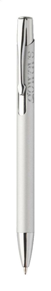 Guľôčkové pero z recyklovaného hliníka s matným telom, textúrovaným úchopom a detailmi ružového zlata. So špeciálnym povrchom na zrkadlové laserové gravírovanie vo farbe ružového zlata. S modrou náplňou.
