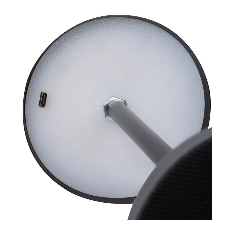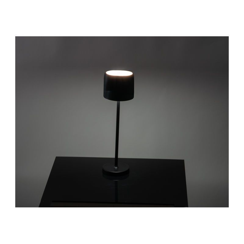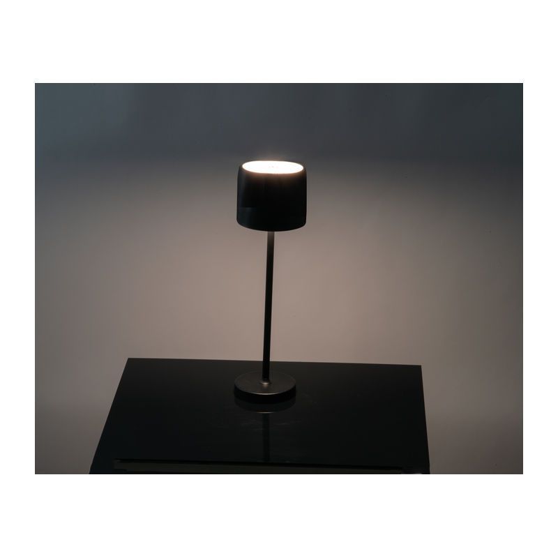 Stolná lampa Crisma z hliníka s dotykovým senzorom, okrúhlou základňou, plynulým ovládaním jasu a nabíjateľnou batériou s kapacitou 3600 mAh, ktorá poskytuje až 20 hodín dokonalého osvetlenia.