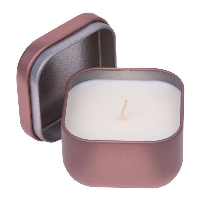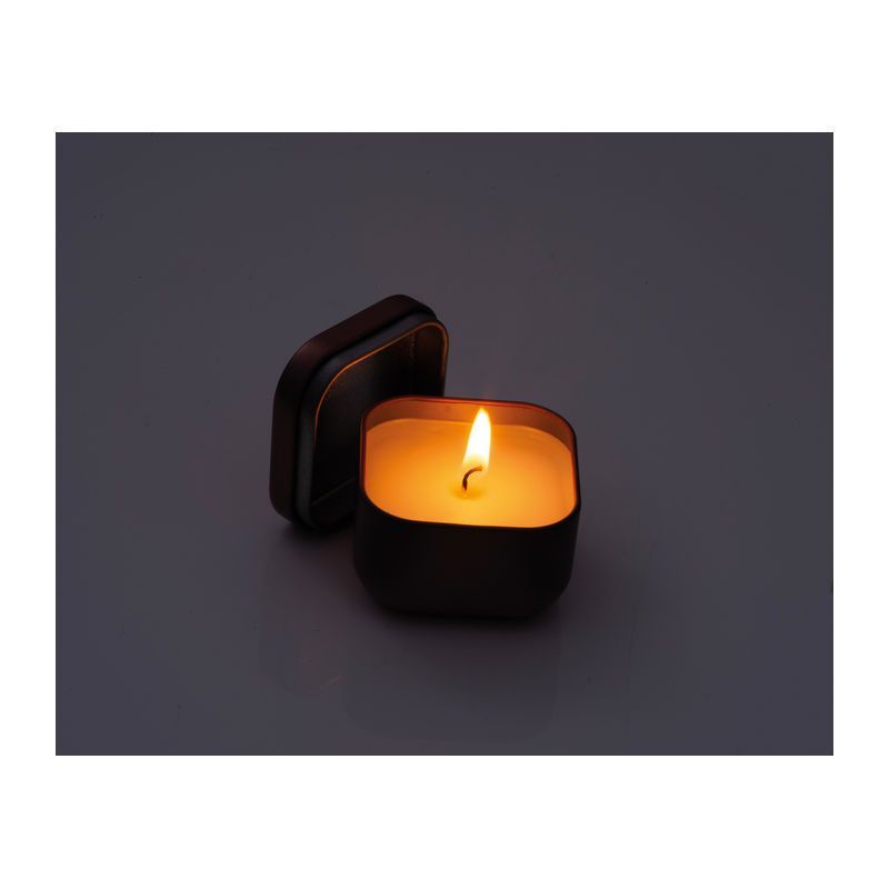 Sviečka v kovovej dóze. Útulné svetlo v praktickej forme. Veko umožňuje sviečku bezpečne uzavrieť.