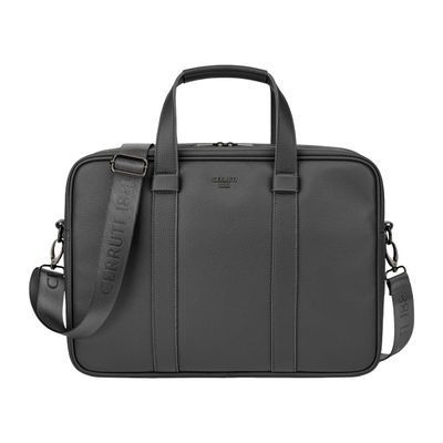 The Jefferson document bag in black with chrome trims embodies a classical and elegant interpretation of a timeless work and travel accessory. Its minimal silhouette is both functional and exhaustive, allowing perfect organisation of essentials through a dedicated laptop compartment, a zipped inside pocket, and a beautifully arranged interior lined with a monogramed signature pattern. Crafted from a carefully chosen matte-grained texture, it balances simplicity with luxurious detailing. Chrome metal accents elevate the design, highlighted by the new Cerruti 1881 plate celebrating the updated logo and the new angular RR zipper pullers that add a precise, refined finishing touch. A retractable and adjustable webbing strap signed with the logo completes this most timeless, classical, and minimal expression of elegance.