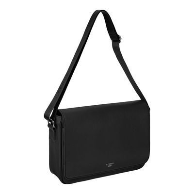 The Jefferson cross-body document bag in black with chrome trims offers a classical and elegant approach to everyday functionality. Compact, minimal, and roamy, it ensures perfect organisation through its well-designed interior, complete with a monogramed lining, an inside zipped pocket, and a convenient front flat pocket. Crafted from a carefully chosen matte-grained texture, it carries a refined presence elevated by luxurious chrome accents, including the new Cerruti 1881 plate celebrating the updated logo. The adaptable webbing strap featuring a tone-on-tone logo completes this beautifully crafted, timeless accessory.