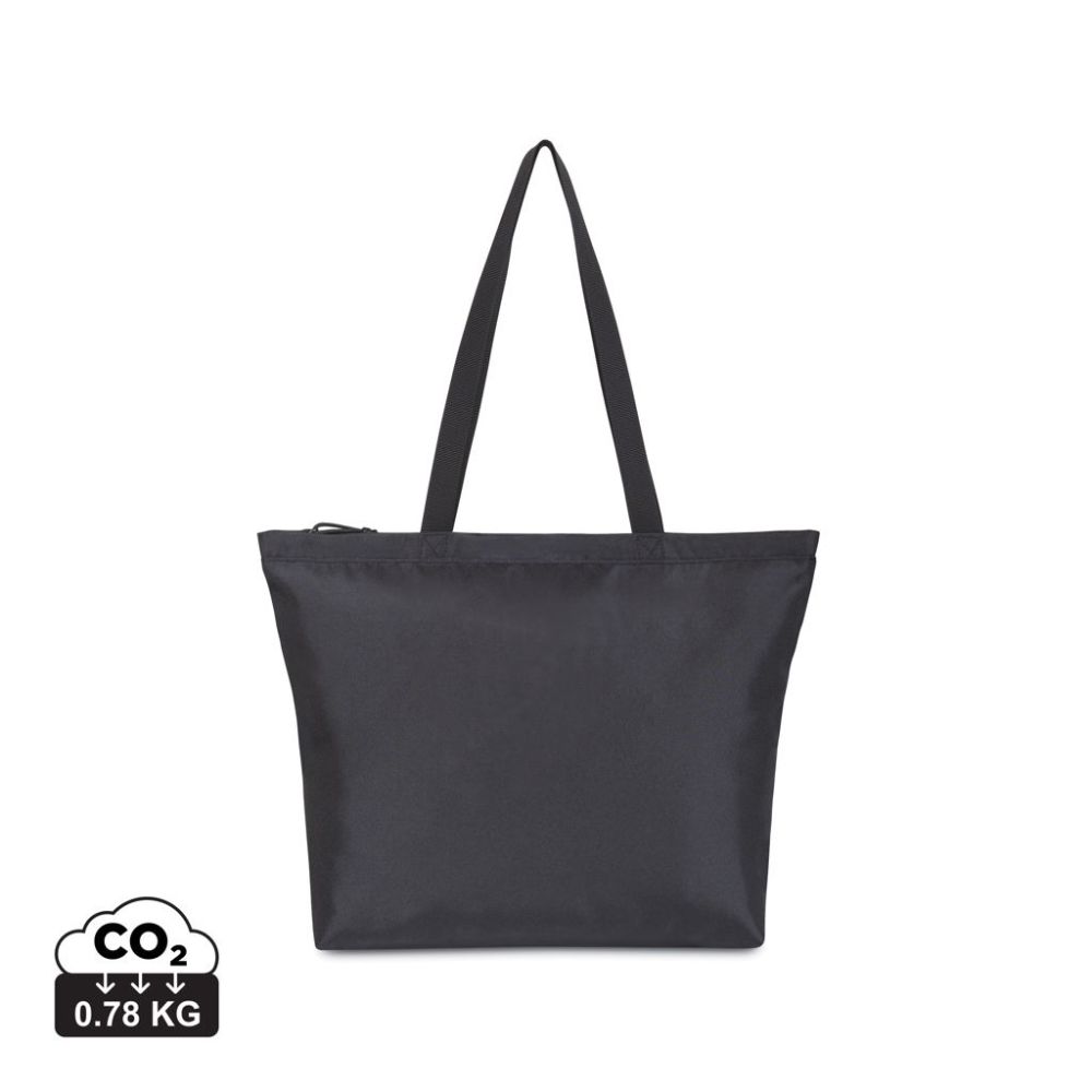 Moderná taška je vyrobená z recyklovaných PET fliaš. Obsahuje priestrannú hlavnú priehradku so zipsovým uzatváraním a vnútorné vrecko na fľašu s nápojom. K dostaniu v Európe aj Severnej Amerike.