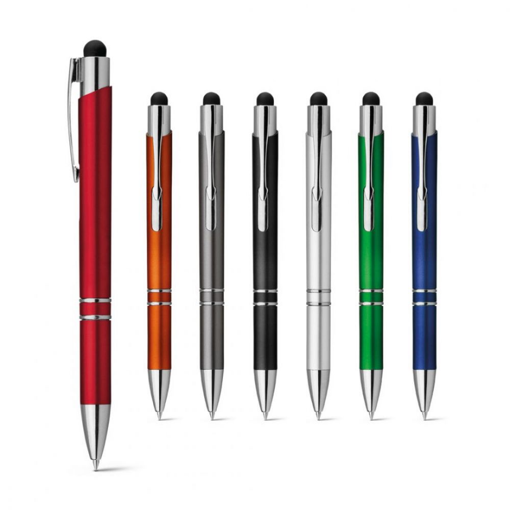 Guľôčkové pero s podsvieteným logom, kovovou sponou a dotykovou špičkou. Obsahuje 3 batérie AG3