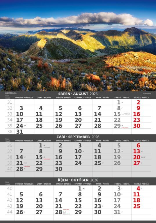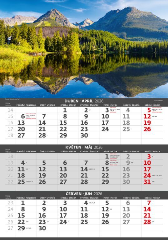 Kalendárium: české/slovenské trojmesačné so sviatkami európskych štátov (CZ / SK / A / B / D / F / H / CH / I / PL / RUS / UKR)