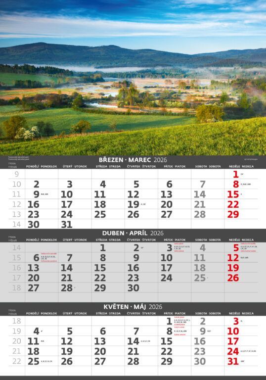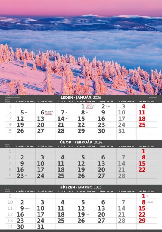 Trojmesačný kalendár Hory 2026