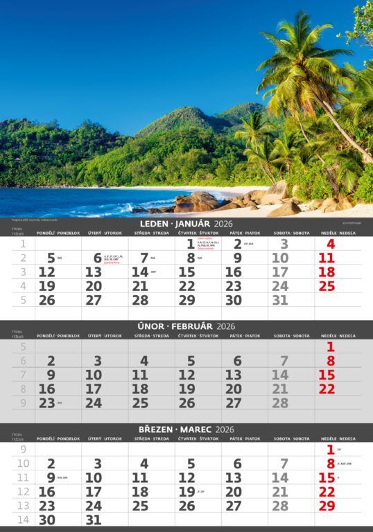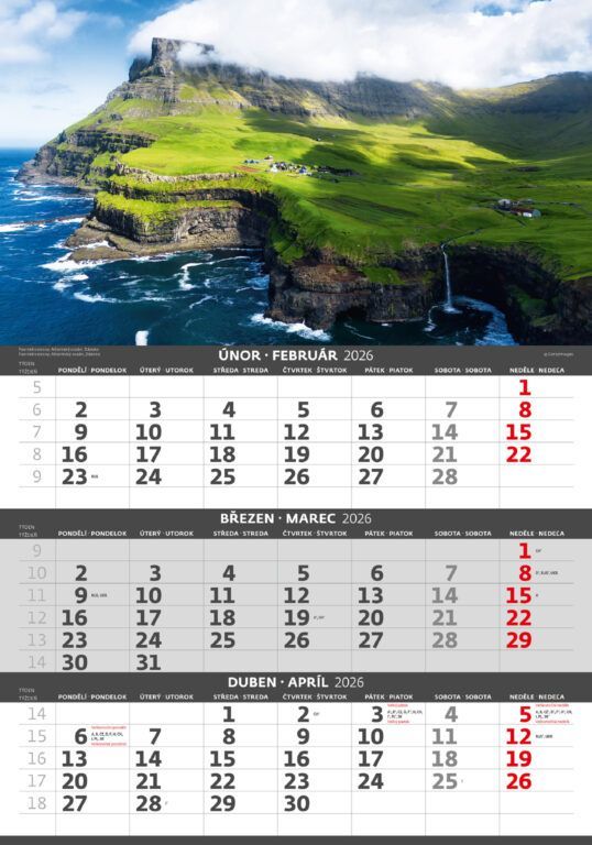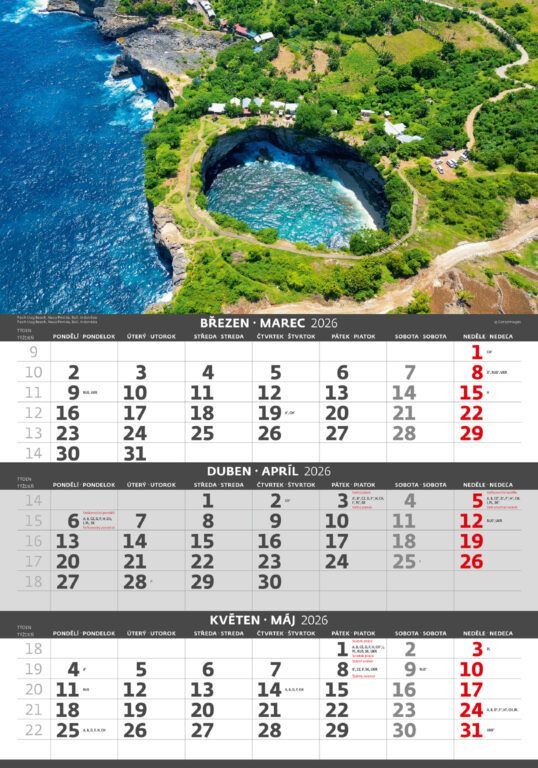 Trojmesačný kalendár Pobrežie 2026