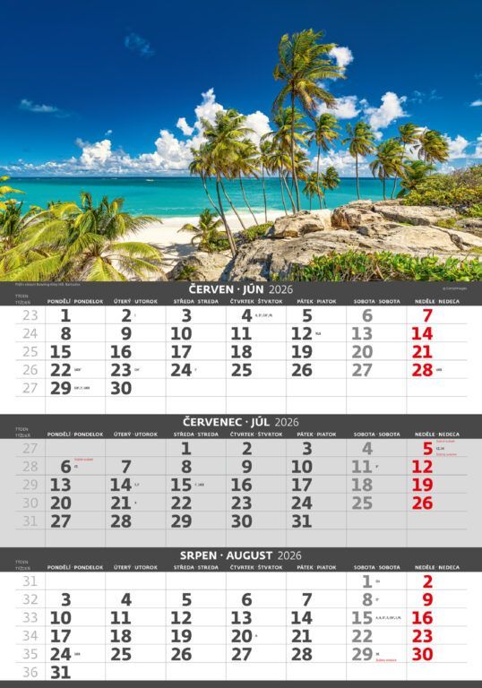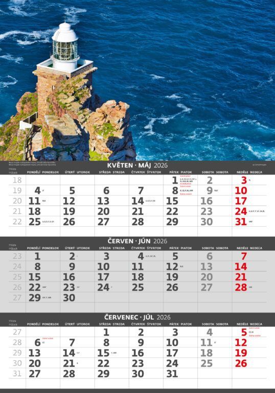 Kalendárium: české/slovenské trojmesačné so sviatkami európskych štátov (CZ / SK / A / B / D / F / H / CH / I / PL / RUS / UKR)