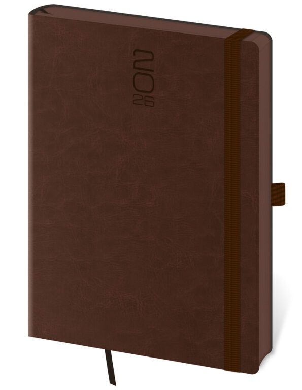 Týždenný diár A5 Memory tmavo hnedý s gumičkou
