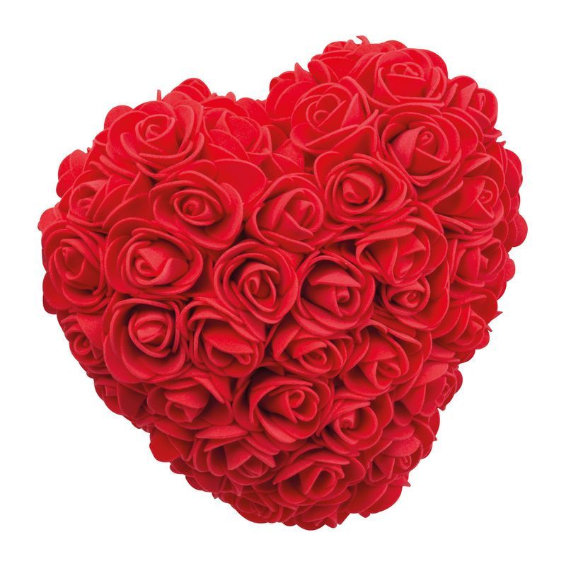 Srdce vyrobené z precízne vyrobených umelých hláv ruží. .Dodávané v priehľadnej, kvalitnej darčekovej krabičke s elegantnou stuhou – ideálne ako dekoratívny darček alebo milé gesto.