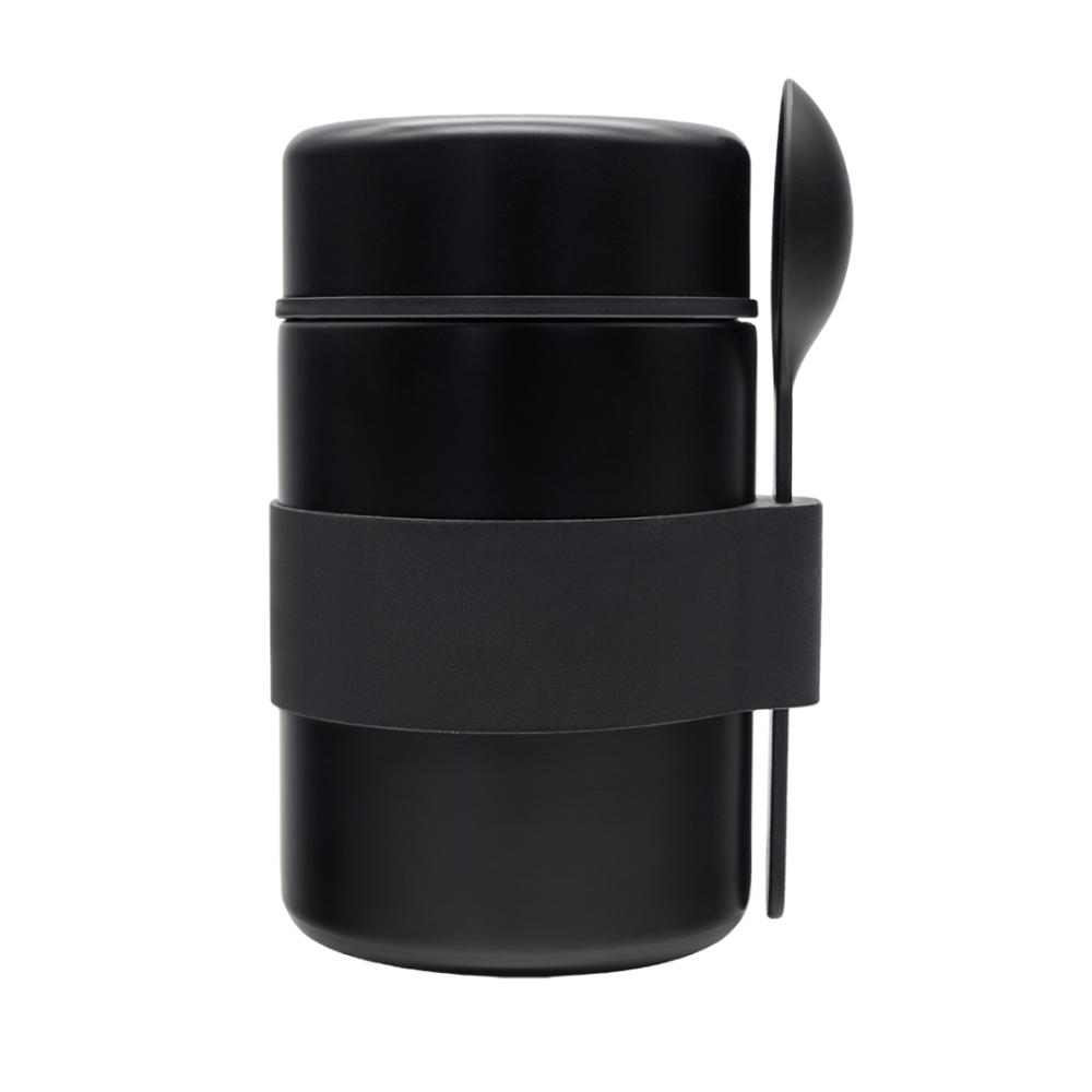 Termonádoba o objemu 460 ml s dvojitou stěnou z nerezové oceli a vnitřní stěnou z vylepšené oceli 18/8. Sada obsahuje také lžičku. Termoizolační schopnost 15 h. Jen ruční mytí.