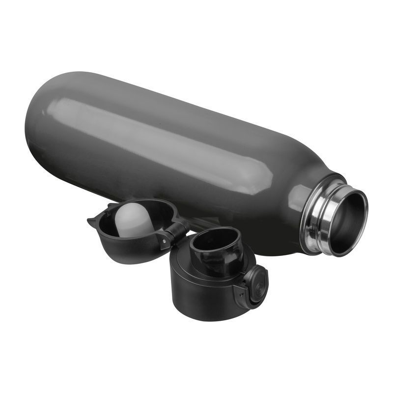Dvojstenná vákuová nerezová termoska 500 ml, viečko na tesnenie sa otvára kliknutím.