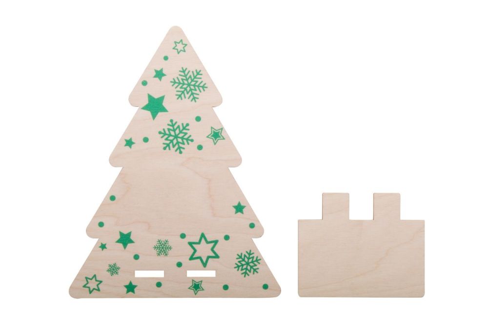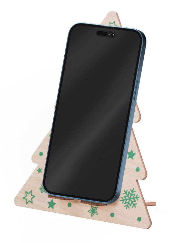 Stojanček na mobil v tvare vianočného stromčeka z brezovej preglejky. Dodávané rozložené.