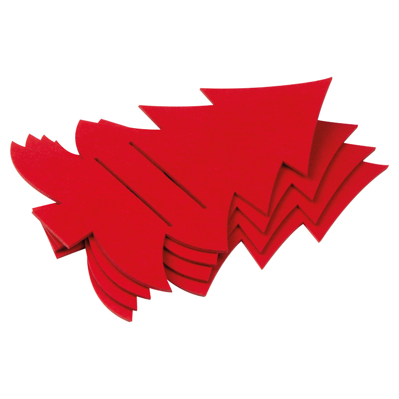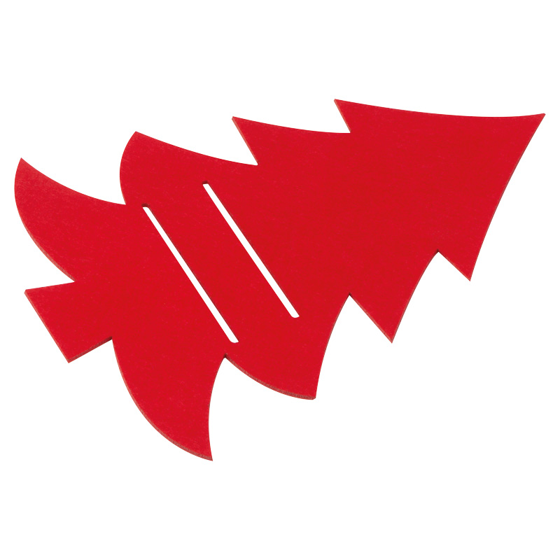 Sada vianočných plstených podložiek na príbor v tvare vianočného stromčeka, vhodná na nôž, vidličku a lyžicu.