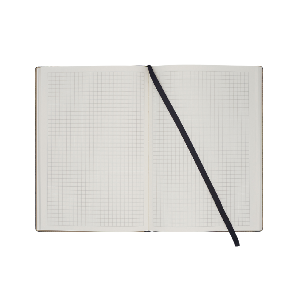 Zápisník v pevné vazbě se stuhou na založení stránky. 120 čtverečkovaných stran (70 g/m2).