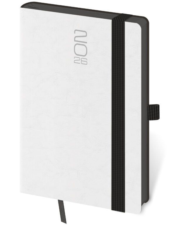 Na nerozoznanie od skutočnej kože, navyše doplnený gumičkou cez chrbát a oriezkou bloku v čiernej farbe. Ďalšími doplnkami sú papierová kapsička na vnútornej strane zadných dosiek a pútko na ceruzku.