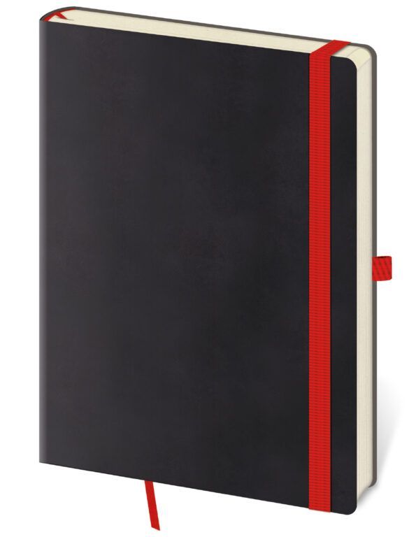 Matná koženka Vivella predstavuje kvalitný, na dotyk príjemný a zároveň veľmi obľúbený materiál, ktorý umožňuje dosiahnuť perfektné výsledky pri razbe bez fólie. Keďže je koženka priamo nakašírována na lepenku, sú dosky zápisníka netradične tenké. Vďaka tomu je zápisník ľahký a ohybný. Zápisník je doplnený praktickou gumičkou na uzatvorenie a pútkom na ceruzku.