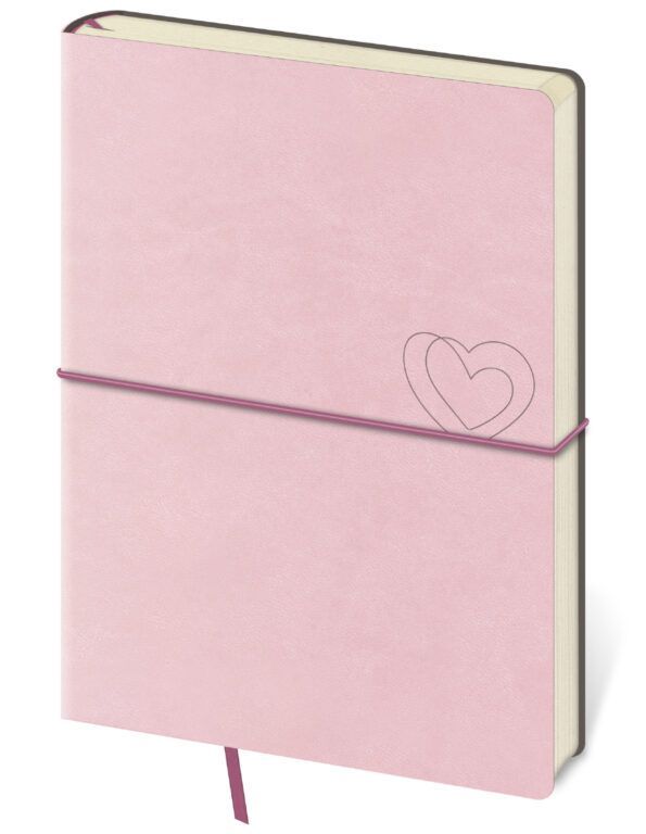 Moderný zápisník v mäkkej ohybnej väzbe s guľatou priečnou gumičkou cez chrbát predstavuje najnovší spôsob spracovania. Diár je príjemný do ruky vďaka matnej koženke a ľahký vďaka mäkkým doskám. Materiál dosiek sa hodí na sleporazbu, ktorá na koženke vynikne.